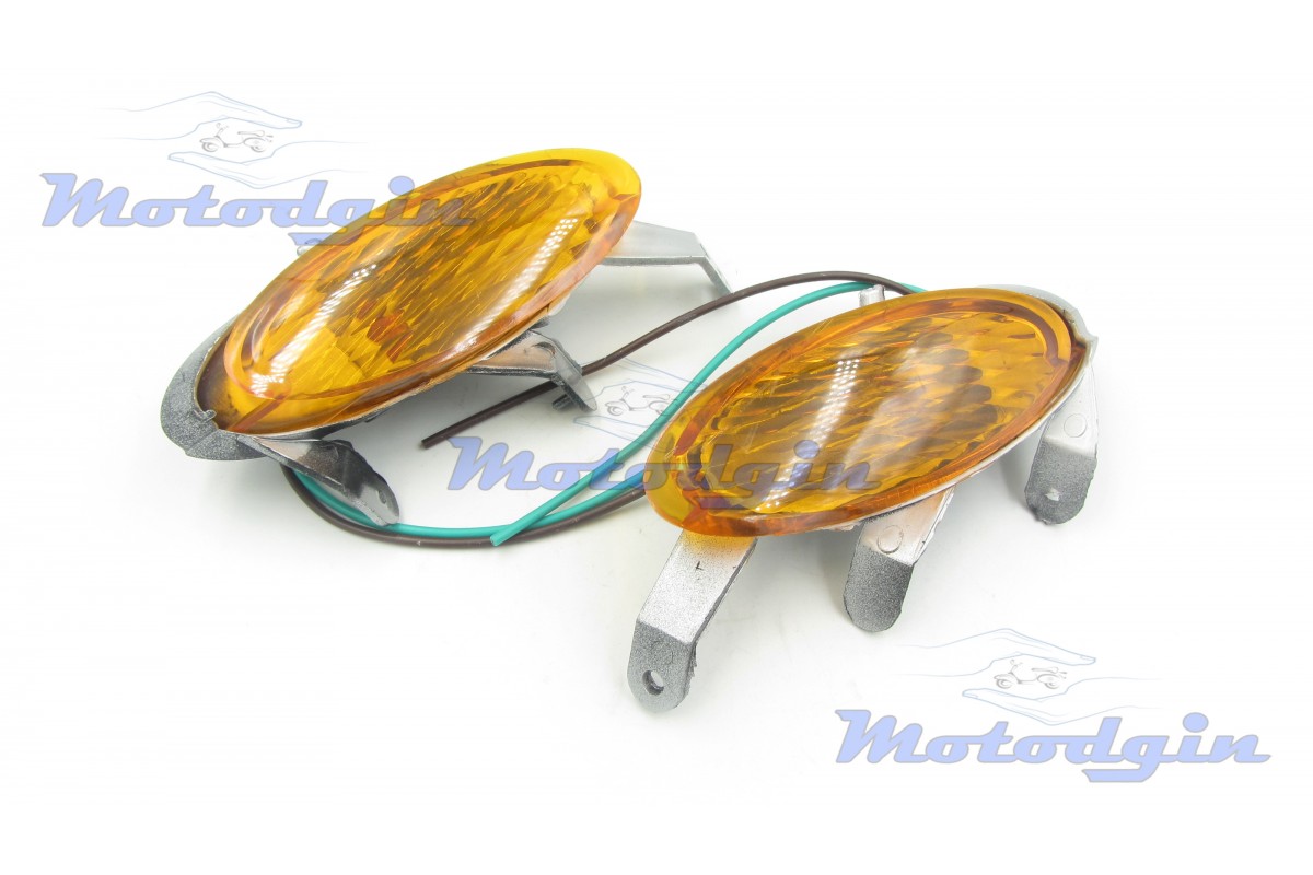 Повороти передні Yamaha BJ ( Ямаха БЖ ) комплект з двох штук, скло жовте, дроти без роз'ємів. Виробник - МТ