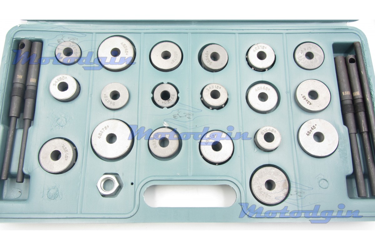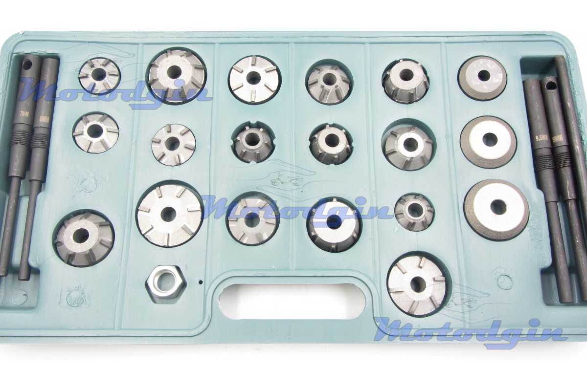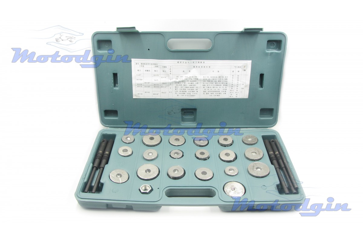 Набір кульок у пластиковому кейсі для ремонту сідла клапана, комплект включає в себе дев'ятнадцять кульок, чотири пілоти діаметром 7,0 мм, 8,0 мм, 9,0 мм, 9,50 мм, вороток. Виробник - китай MG