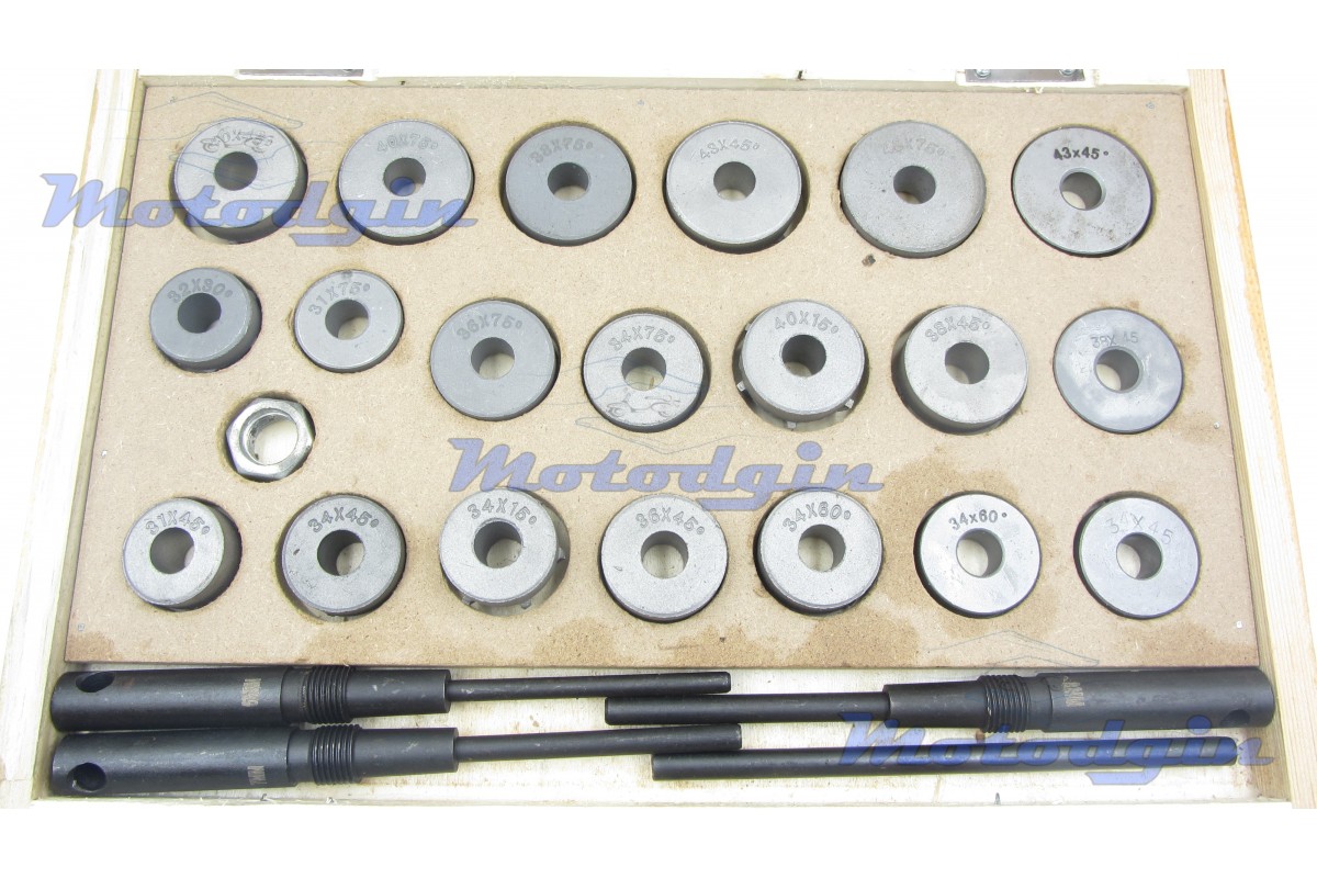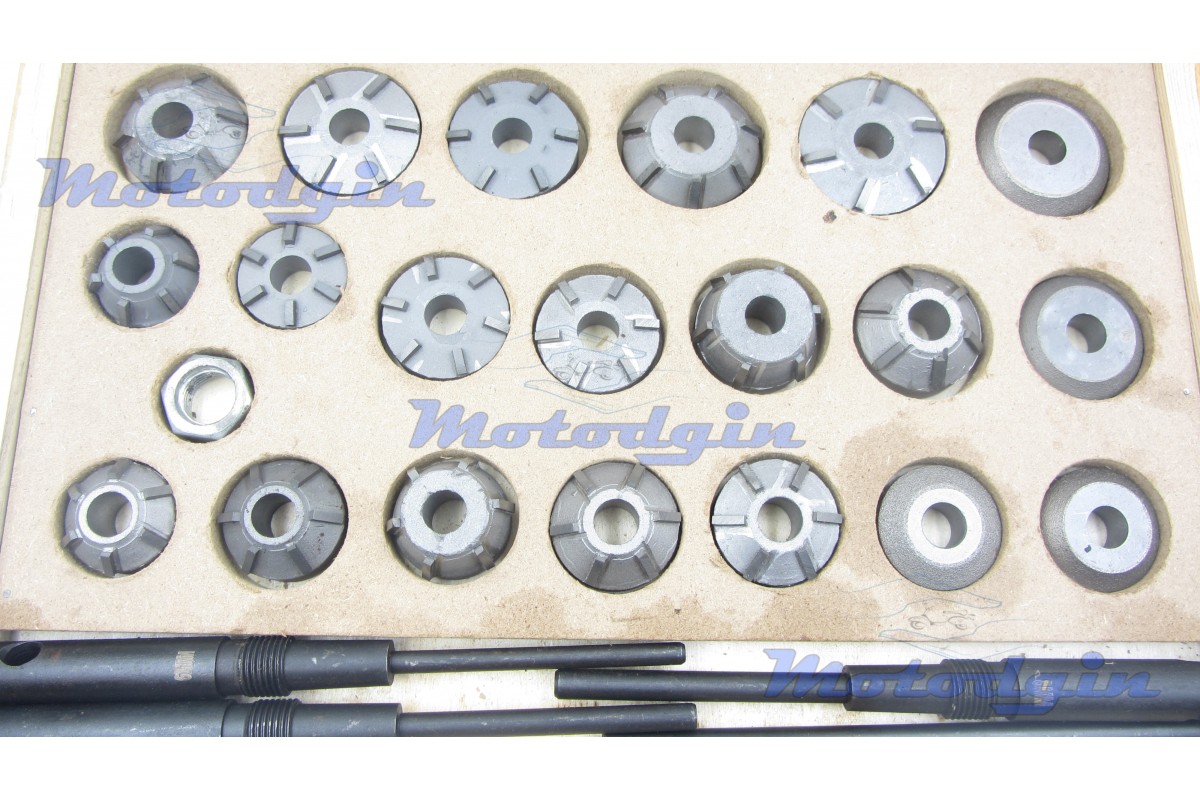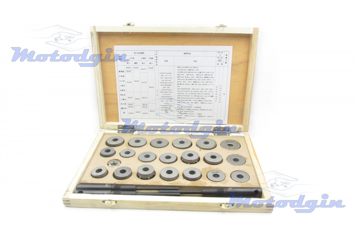Набір шарошок в дерев'яному кейсі для ремонту сідла клапана, комплект включає двадцять шарошок, три пілоти діаметром 6.0мм, 7.0мм, 8.0мм, комір. Відмінний набір для ремонту мото та авто техніки у приватних майстернях. Виробник - Китай MG
