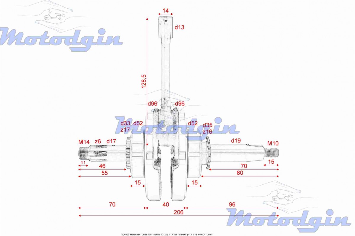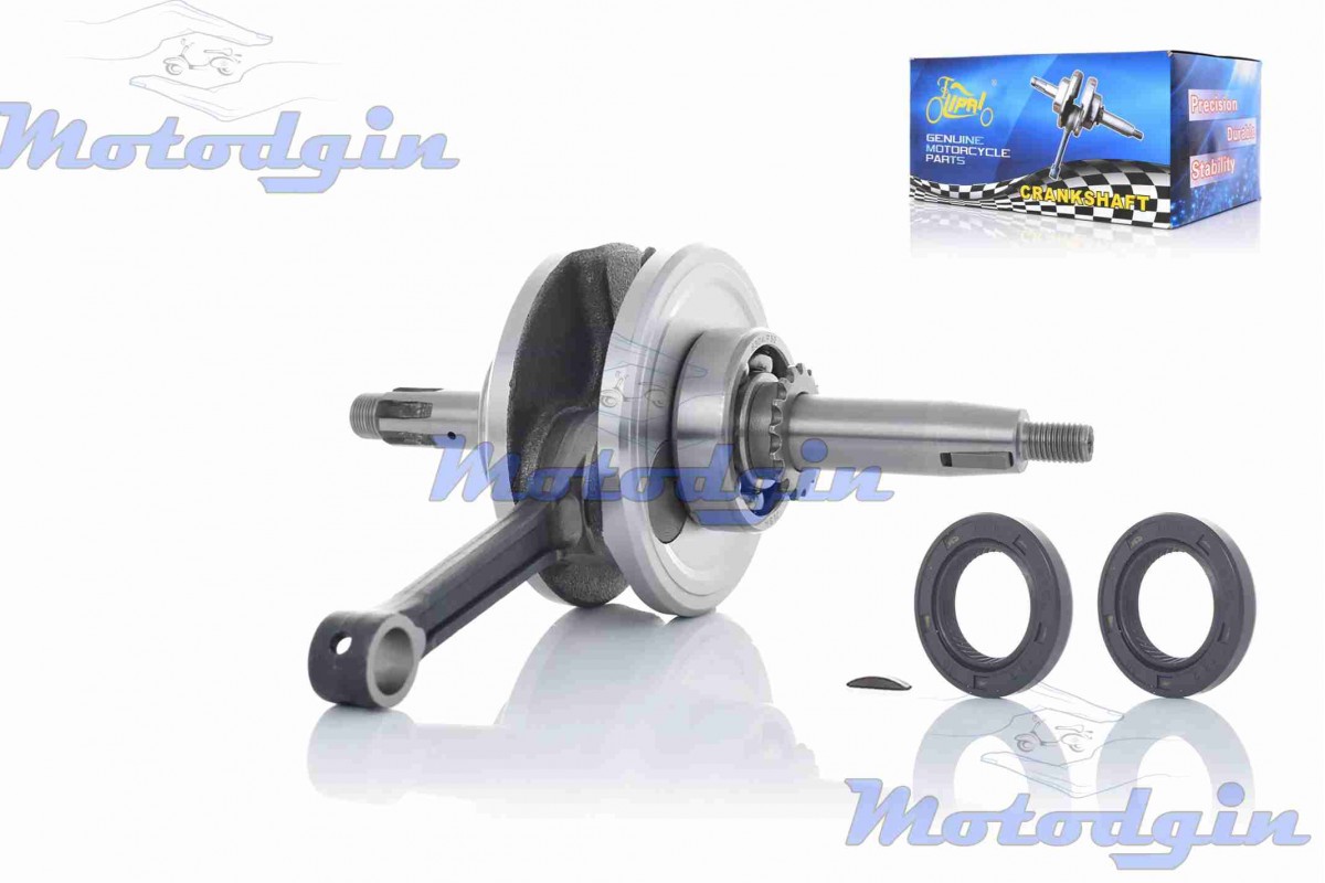 Колінчастий вал «колінвал» для чотиритактного китайського мопеда Alpha / Delta / TTR 125 (Альфа, Дельта). Колінчастий вал Дельта палець 13мм, поставляється в комплекті з сальниками колінчастого вала і шпонкою. Колінчастий вал Alpha / Delta 125 / TTR 125 - встановлюється в двигун 152FMI, призначений для надійної роботи двигуна мопедів моделей Alpha і Delta 125. Виготовлений з міцного металу для забезпечення довговічності і стабільної роботи. Колінчастий вал забезпечує правильне обертання поршня, оптимальну компресію і плавну роботу двигуна. Ідеально підходить для заміни зношеного або пошкодженого колінчастого вала, продовжуючи ресурс двигуна вашого транспортного засобу.