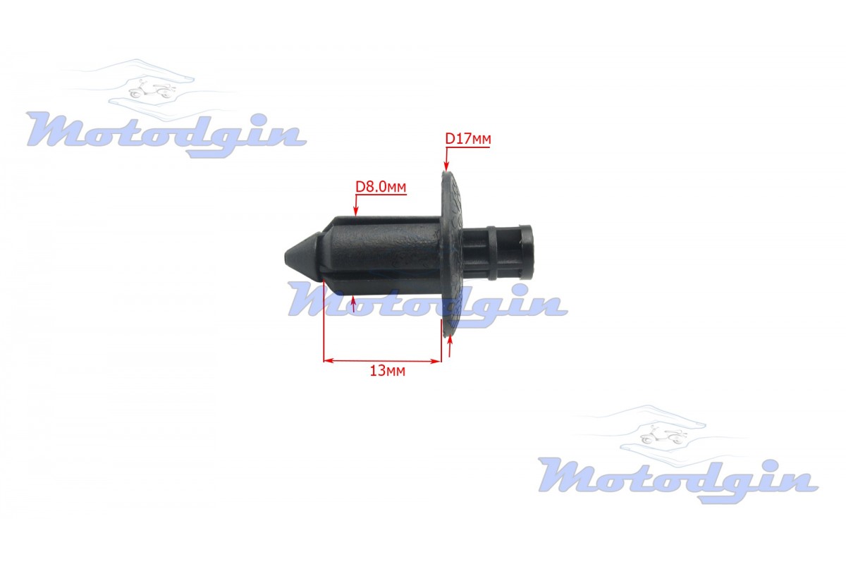 Пластикова андапка з цвяхом 8.0мм (кліпса) кріплення пластику скутера, універсальне кріплення пластику сумісно практично з усіма скутерами будь-якої марки і виробника. Андапка деактивує проштовхуванням пластикового цвяха всередину, дуже зручна і практична кліпса. Широкий спектр використання на японських максі скутерах, крила, подклювнікі, подгазетнікі, лижі і так далі.