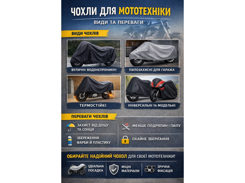 Якісний чохол — це невелика інвестиція, яка допоможе зберегти мототехніку в ідеальному стані незалежно від сезону.