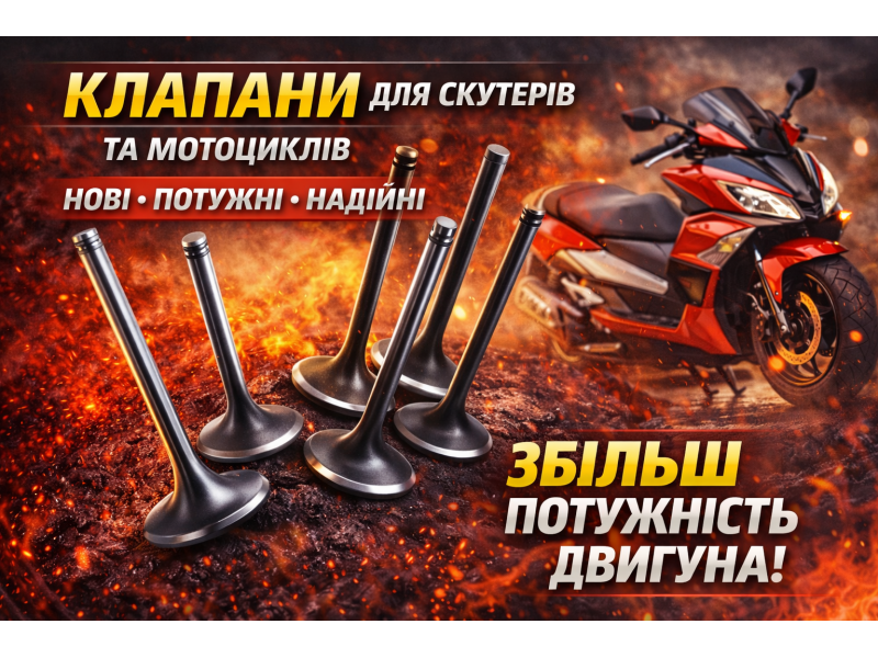 Обирайте якісні клапани для скутера або мотоцикла — забезпечте стабільну компресію, максимальну потужність та довгий ресурс двигуна.