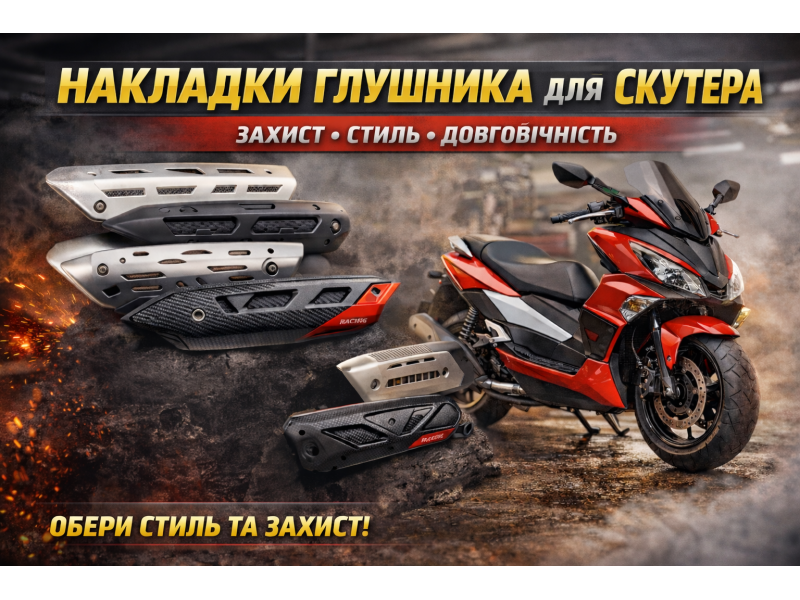 Накладка глушника для скутера — це практичний елемент вихлопної системи, який виконує одразу дві функції: захищає глушник від пошкоджень та надає техніці стильного вигляду. Вона встановлюється поверх основного корпусу глушника та допомагає зберегти його в ідеальному стані.