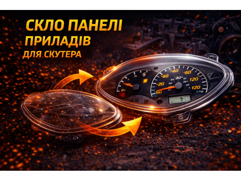 Скло панелі приладів скутера є важливим елементом конструкції приладової панелі. Воно виконує захисну функцію, оберігаючи спідометр, індикатори та інші прилади від пилу, бруду, вологи та механічних пошкоджень. Незважаючи на простоту конструкції, стан скла панелі приладів безпосередньо впливає на зручність читання показників під час руху.