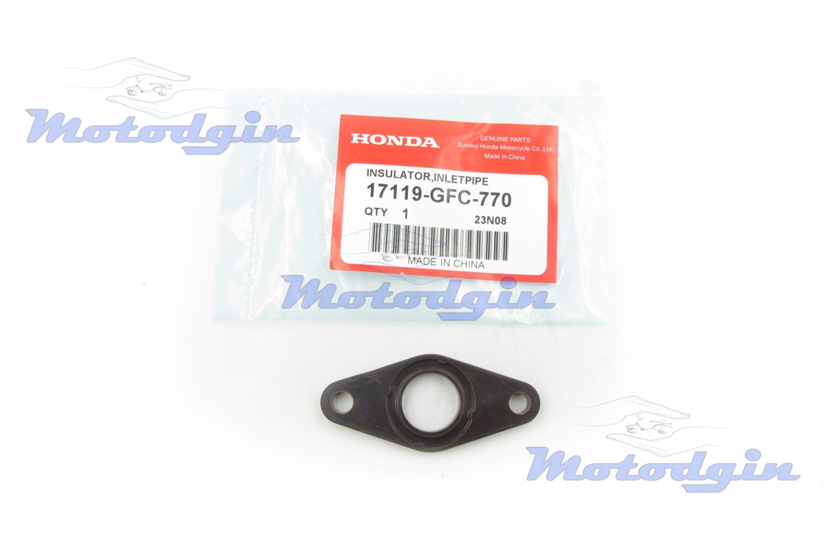 Текстолітова прокладка впускного колектора Honda AF67 / AF68 Original (Хонда Діо аф 68) текстолдитова прокладка інжектора Хонда Аф 68 виготовляється на дочірньому підрозділі Хонда. Відстань по центрах отворів 52мм, діаметр отвору впускного 17мм, товщина прокладки 5мм, діаметр отворів кріплення 6мм. виробник Honda Китай