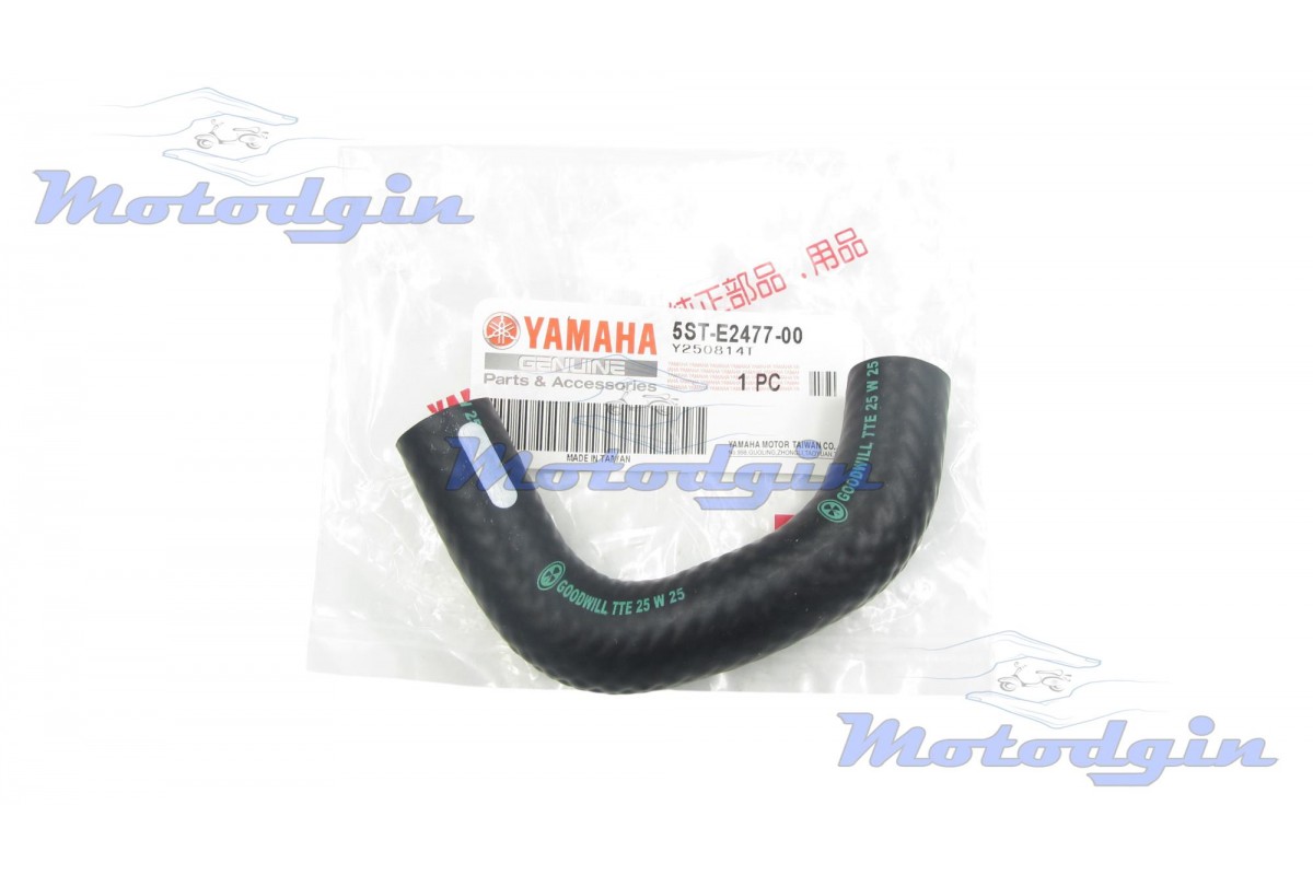 Патрубок системи охолодження 5ST-E2477-00 японського чотиритактного скутера Yamaha Gear UA06J, Yamaha Jog SA39J (Ямаха Джеар, Ямаха Вокс) Гумовий патрубок охолодження японського скутера Ямаха, даний патрубок з'єднує циліндр і помпу. Довжина патрубка 165 мм, зовнішній діаметр 20 мм, внутрішній 13 мм. Виробник - Yamaha