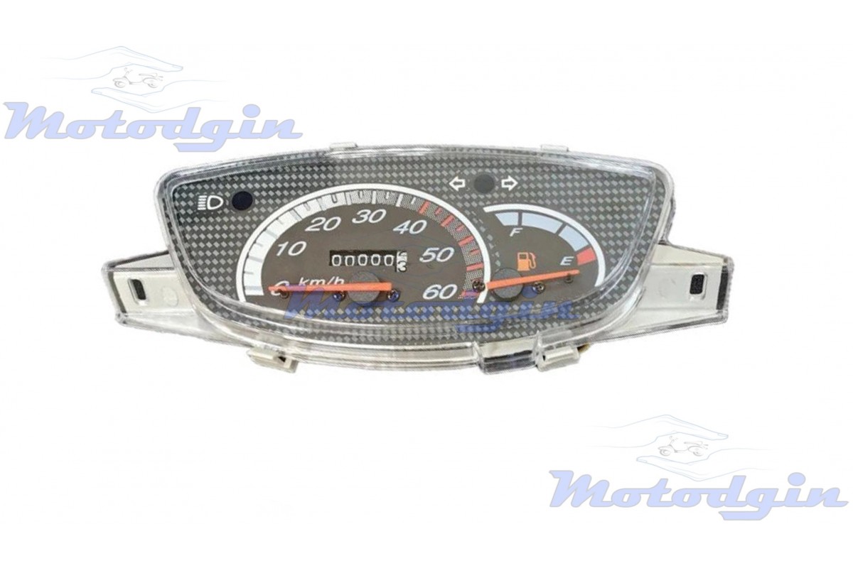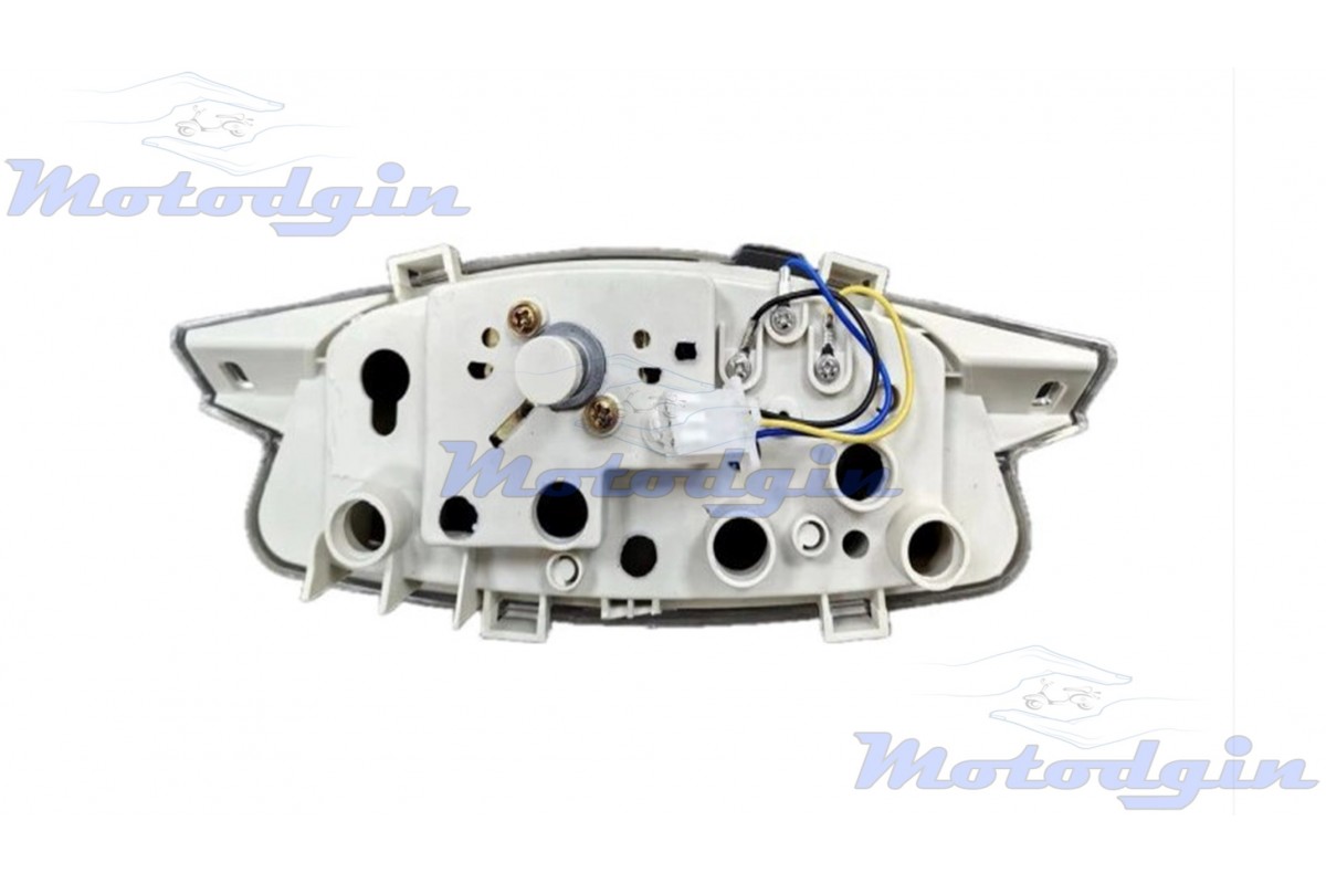 Панель приладів Honda Dio AF27, Dio AF28, Dio AF34 (Хонда діо аф 27, хонда діо аф 28) спідометр хонда діо виготовлений максимально наближено до оригіналу, поділки розмічені до 60км. Зверніть увагу на панель приладів поставляється без проводки і лампочок. Увага панель приладів без утримувача реле поворотів. Виробник МТ