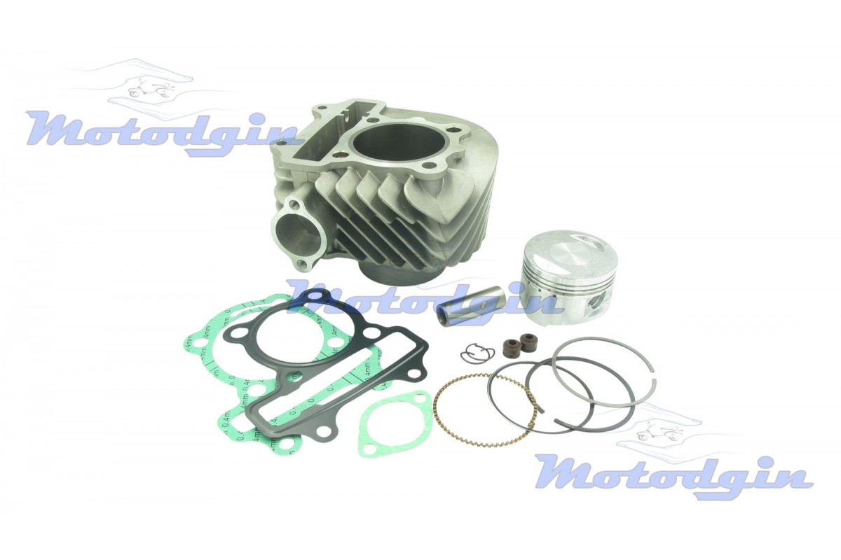 Поршнева ATV Super Homag об'ємом 150cc - 57.4мм, скутери RY150T, WY150 (палець 15мм) У комплекті циліндр, комплект прокладок, сальники клапана, поршень, палець. Діаметр цпг 57.4мм, діаметр пальця 15мм, висота циліндра 90мм. виробник - MG