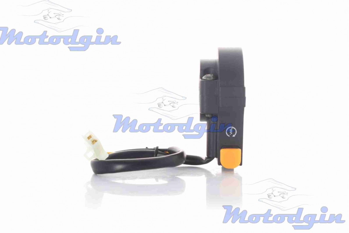 Блок кнопок керма «пульти» правий V200. Правий блок управління «кнопка пуску» для мотоциклів, квадроциклів, скутерів і мопедів, для установки на кермо діаметром 22 мм. Даний пульт управління забезпечує зручний доступ до основних функцій під час руху. Виготовлений з міцного пластику, стійкий до вібрацій і погодних умов, розрахований на тривалу і надійну роботу.