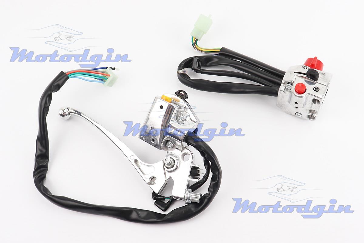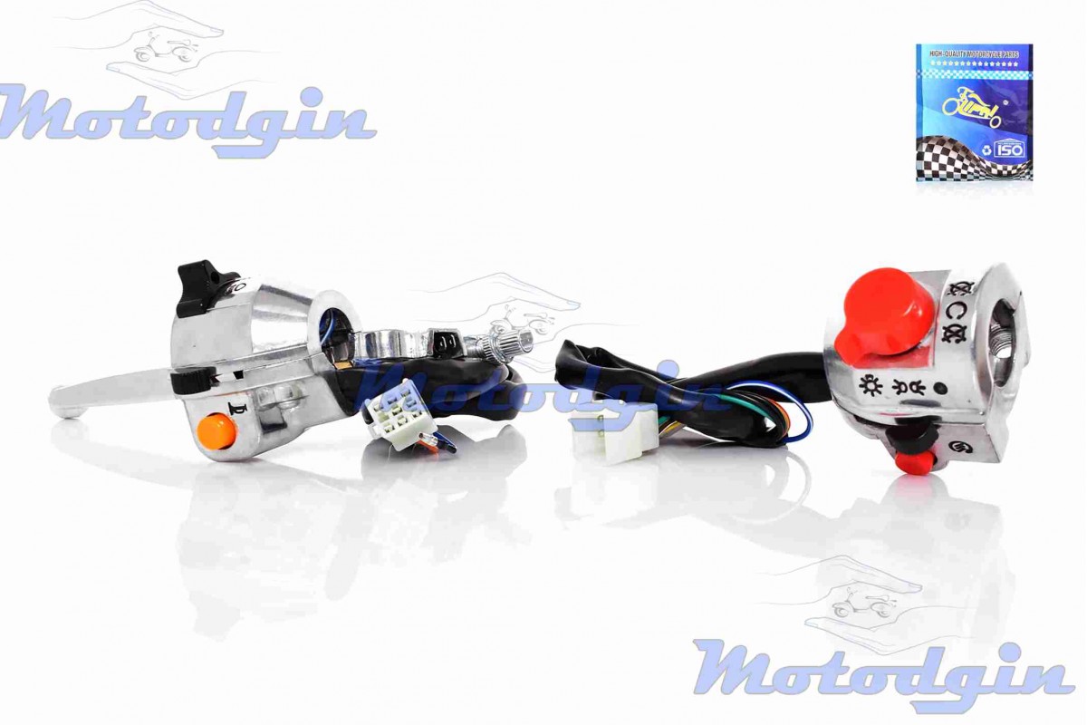 Блок кнопок керма ZS50F (чопер). Блок кнопок поставляється комплектом дві штуки, в зборі з проводами. Лівий блок з важелем, вихід проводів роз'єм 8+1, правий блок вихід проводів роз'єм 7+1 контакт. LPI
