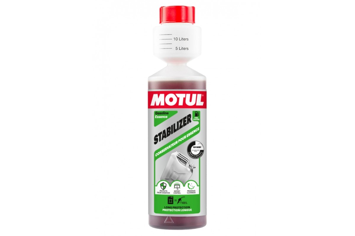 - перед зимовим зберіганням запустіть двигун на бензині із засобом MOTUL STABILIZER, щоб забезпечити захист від корозії всередині паливної системи двигуна.