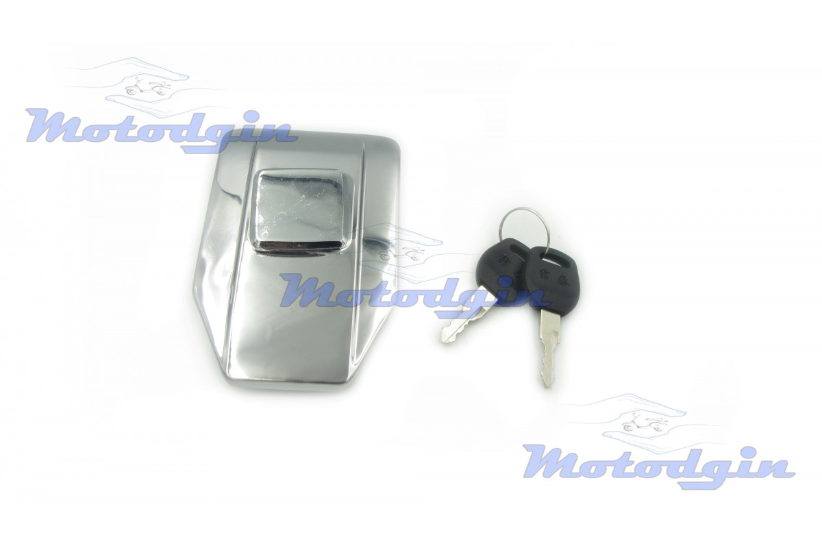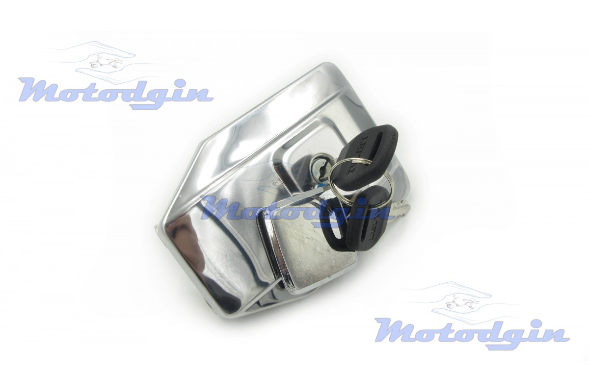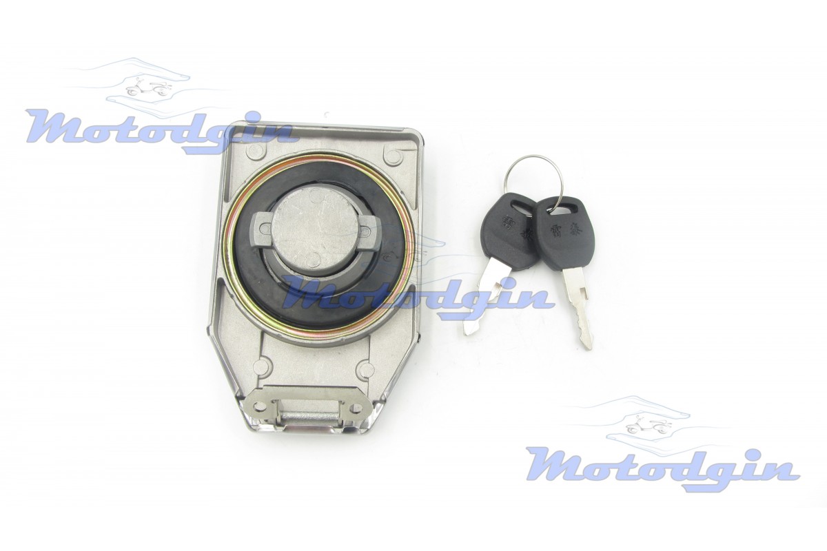 Кришка паливного бака китайського мотоцикла WY125 кришка виготовлена у суворій відповідності до оригіналу. Ширина кришки 72х40мм, діаметр кільця ущільнювача зовнішній 56мм, діаметр отвору бака мінімум 38мм, в комплекті два ключі. виробник - MG