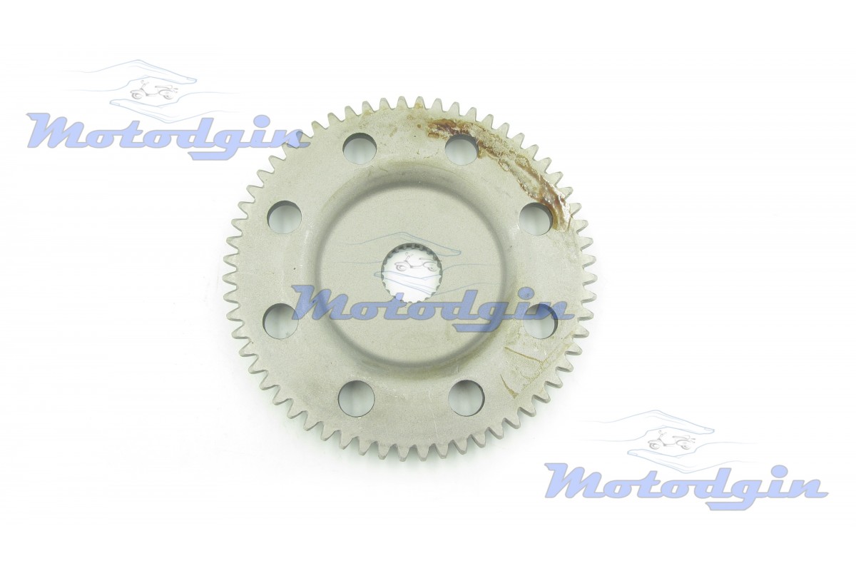 Шестерня стартера двотактного скутера Suzuki Address 100 (Сузукі Адресс) велика шестерня виготовлена максимально наближено до оригіналу. Зовнішній діаметр 107 мм - 60 зубців, внутрішній діаметр 18 мм - 22 зубці, висота 11 мм, товщина металу шліцьової частини 4,5 мм. Виробник - MG.
