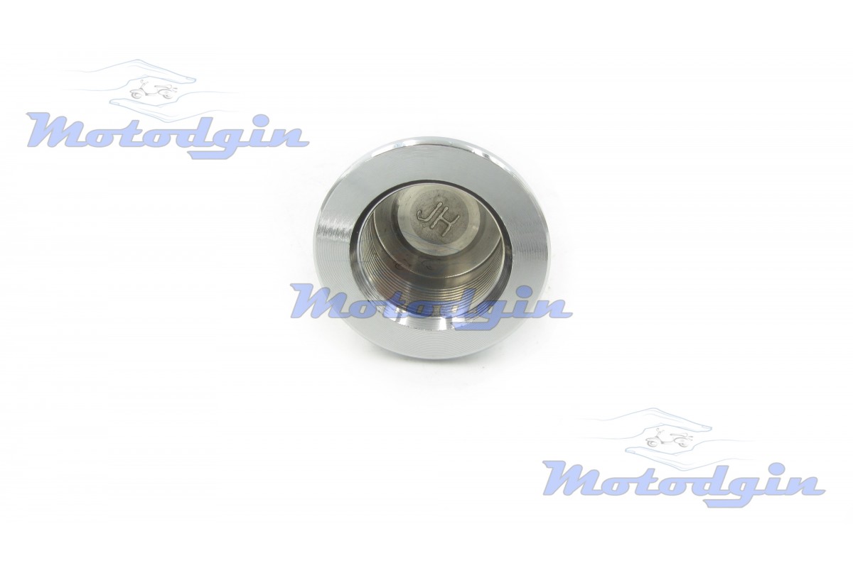 Гайка заглушка траверси Yamaha YBR125 (Ямаха ЮБР 125) Хромована гайка заглушка виготовлена максимально наближено до оригіналу. Діаметр отвору під вилку 21мм, крок різьблення 1, шестигранник під ключ 27мм, глибина гайки 18мм. Виробник - MG