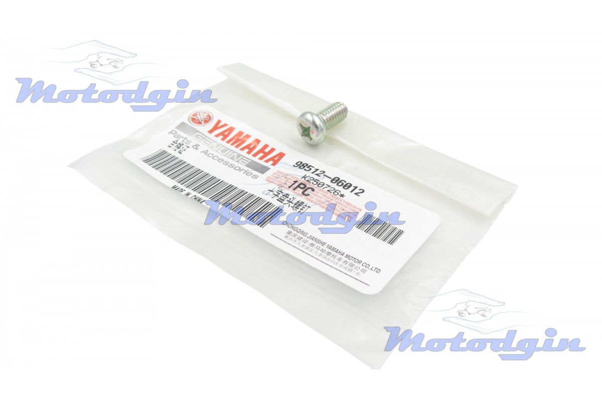 Гвинт кріплення притискної пластини шестерні стартера 98512-06012 мотоцикла Yamaha YBR 125 (Ямаха ЮБР 125) Гвинт виготовлений з якісних матеріалів та передових технологій, на заводі Ямаха. Цей гвинт використовується для кріплення притискної пластини шестерні стартера, а також для кріплення пластини підшипника коробки передач. Довжина гвинта повна з капелюшком 15мм, довжина різьблення 11мм, діаметр різьблення М6, крок різьблення 1.0мм, діаметр капелюшка 10мм. Виробник - Yamaha