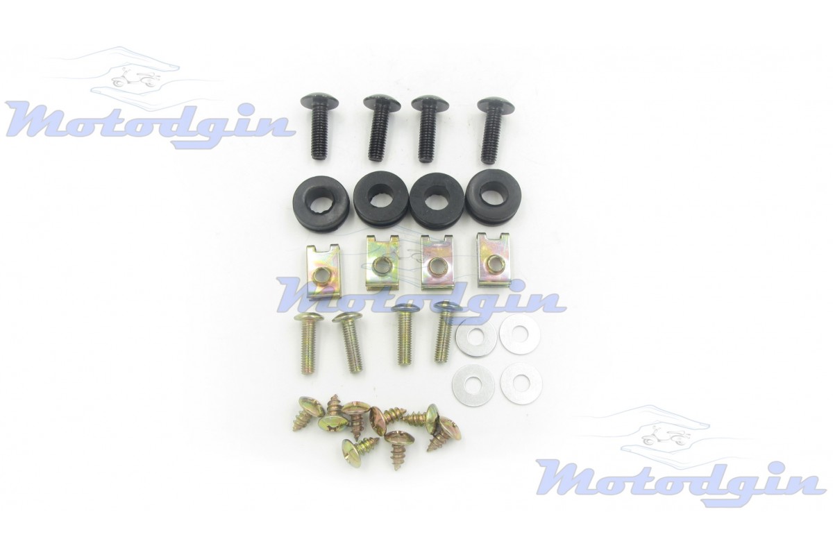 Комплект кріплення обтічника Yamaha YBR 125 (Ямаха ЮБР 125) Комплект кріплення включає, гвинти, втулки та кліпси кріплення фари, саморізи кріплення поворотів та накладок обтічника. виробник - MG