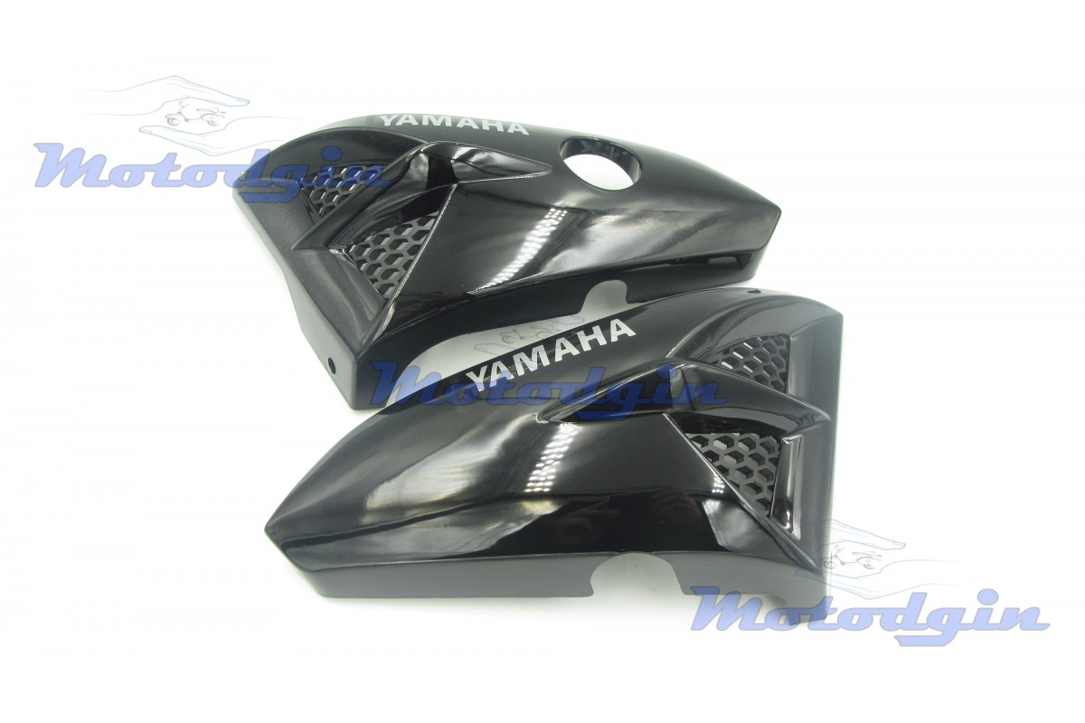 Пластик під бак "зябра" Yamaha YBR125 чорні (Ямаха ЮБР 125) Бічний пластик повітрозабірники під бак виготовлений максимально наближено до оригіналу. Пластик якісно забарвлений з наклейкою Ямаха, присутні всі необхідні отвори та вуха кріплення. виробник - MG