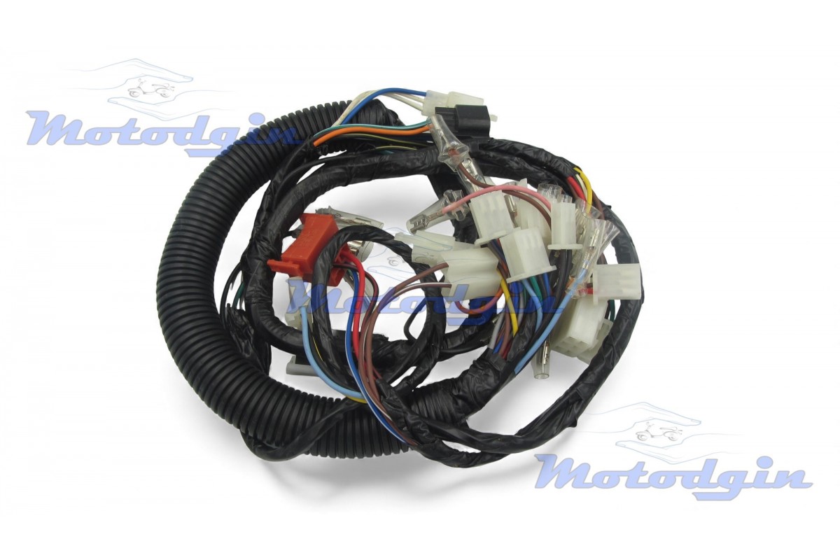 Проводка чотиритактного мотоцикла Yamaha YBR125 2006р (Ямаха ЮБР 125) Проводка першого покоління під статор генератора 5VL-LGJSH 6+1 котушок, підключення генератора два роз'єми 4+3 дроти. Проводка виготовлена максимально наближено до оригіналу. Виробник - MG