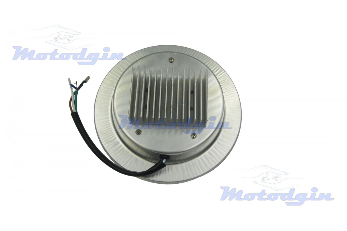 Світлодіодна вставка у фару Yamaha YBR125 12 діодів (Ямаха ЮБР 125) Вставка в фару Ямаха ЮБР 125 світлодіодна дванадцять основних діодів, два додаткових габарити, корпус фари оснащений масивним алюмінієвим радіатором для ефективного охолодження, потужність заявлена виробником 12/24W, ближній / дальній. LED вставка поставляється в комплекті з роз'ємом і скобами кріплення. Зверніть увагу на фотографії, підключення індивідуальне на кожному мотоциклі, необхідно правильно підключати дроти для коректної роботи. Діаметр вставки по ободку 160 мм, по склу 150 мм, глибина фари 70 мм. Виробник - MG
